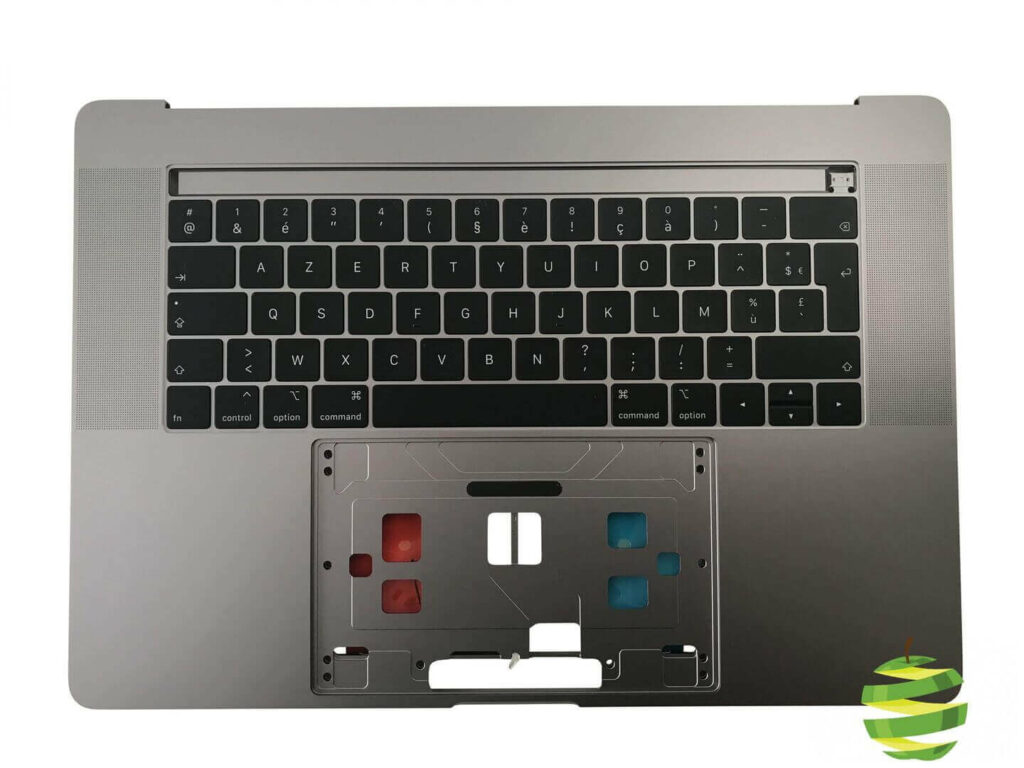 La coque supérieure du MacBook Pro Rétina 15″ TouchBar A1990 comprend le clavier Azerty (Français) + le rétroéclairage, l’emplacement de la Touch Bar.